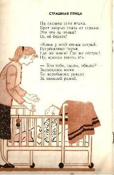 На окошко села птаха, Брат закрыл глаза от страха: Это что за птица? Он ее боится! Клюв у этой птицы острый, Встрепанные перья. Где же мама? Где же сестры? Ну, пропал теперь я. - Кто тебя, сынок, обидел? - Засмеялась мама.- Ты воробышка увидел За оконной рамой.
